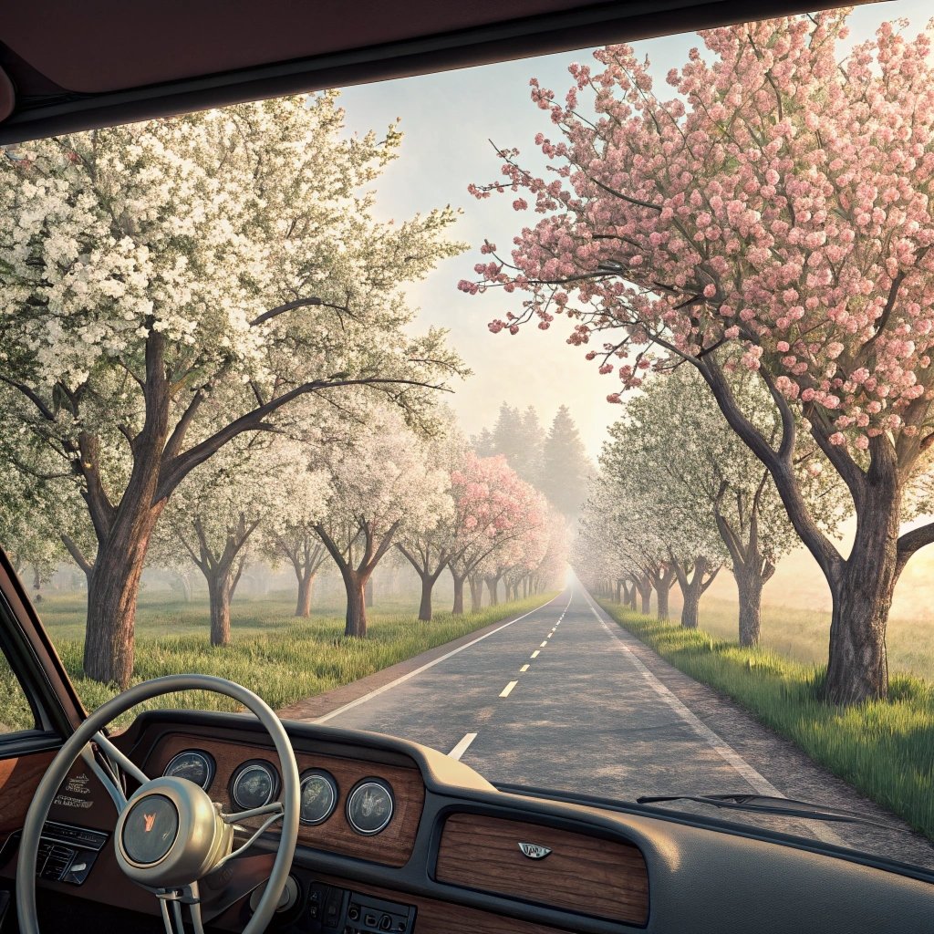 of greening lawns, sky new-blue